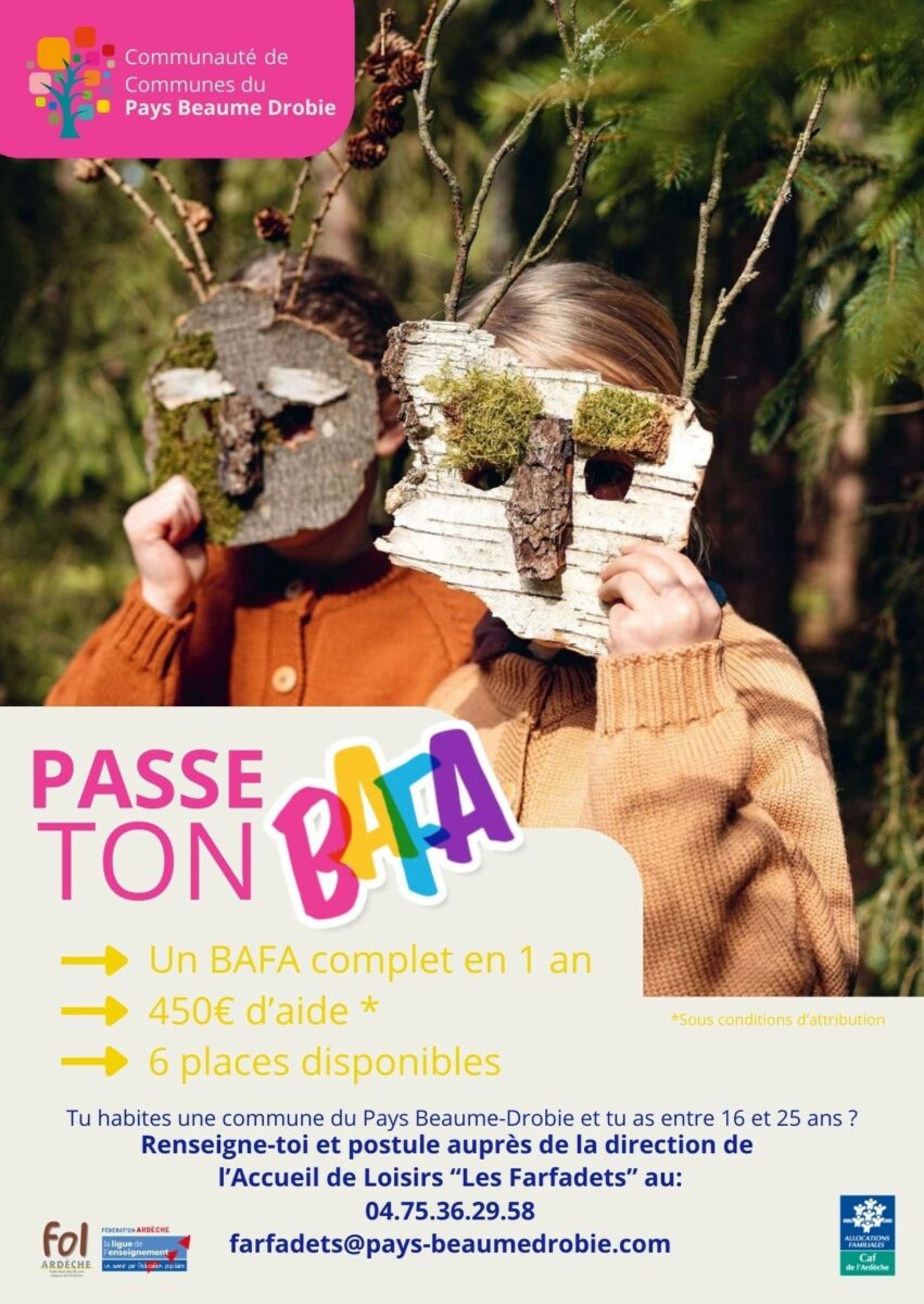 Cette année encore, la Communauté de Communes du Pays Beaume-Drobie aide 6 jeunes du territoire à passer leur BAFA. Intéressé ?